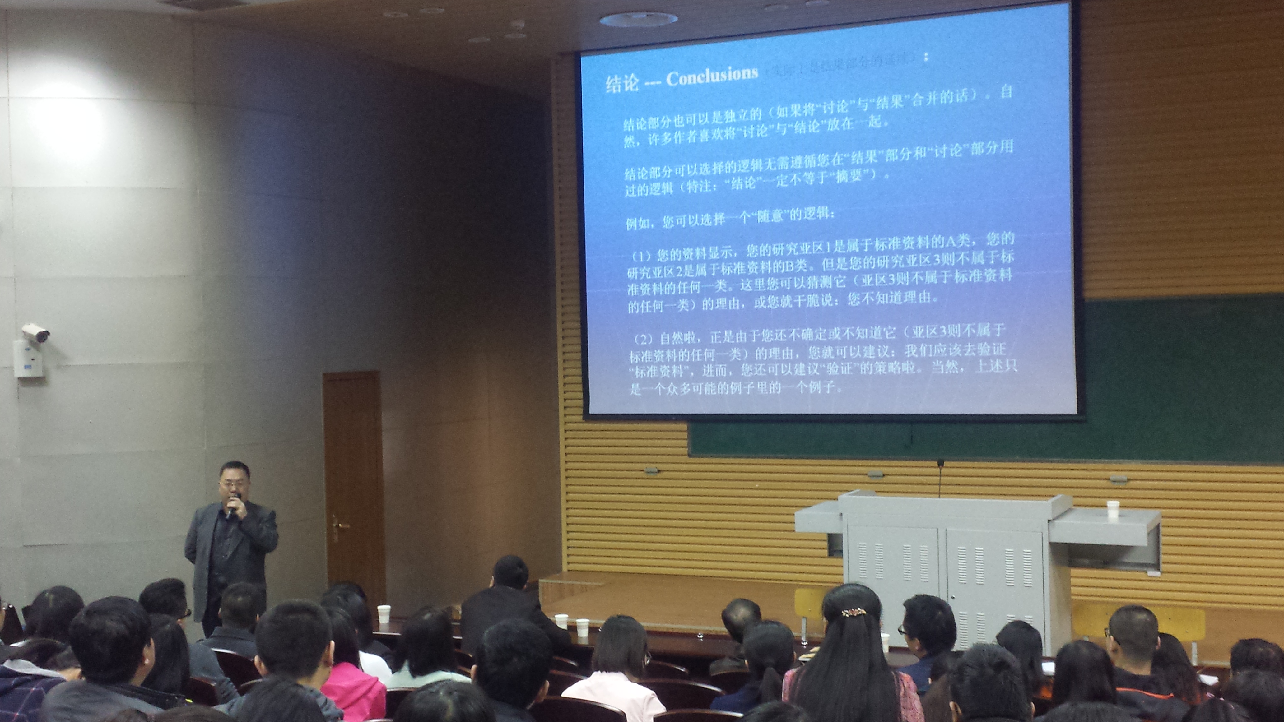 报告中,冯兆东研究员详细介绍了科技论文阅读方法与技巧,科技论文写作要领和要注意的问题,从科技论文组成、结构、内容安排等方面详细做了说明,并以写作时重点斟酌和考虑的细节作为实例,讲解了近期和远期培养科研能力的基本要求。另外,冯兆东研究员还向师生介绍了《Journal of Arid Land》杂志的投稿系统、评价体系、影响因子和审稿过程,并希望大家踊跃投稿,激励大家在科技论文写作方面取得突破,获得更好科研成果。