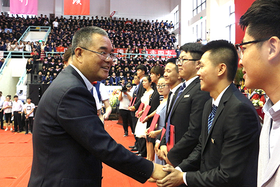 6月14日上午,“437bwin必赢国际官网2017届学生毕业典礼暨学位授予仪式”在学校体育馆隆重举行。学校对在全校范围内评选出的“就业创业之星”进行了表彰奖励,我院王维洁、王孝隆荣获“就业创业之星”,党委副书记刘玉泉为2017届就业创业之星获奖代表颁奖。