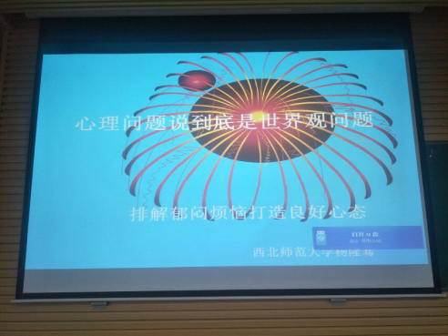 杨老师针对新生入学后走进一个新环境,能够影响心理健康的不利因素逐一作了分析。主要讲了以下八个方面的问题:1.为什么说心理问题是世界观问题;2.无法改变的只能适应;3.必须正确选择比较对象;4.谁也无法堵住别人的嘴;5.什么应当满足,什么永不满足;6.不做办不到的事情;7.坚决戒掉各种恶习;8.只有适合自己才是最好的。同时还介绍了自己开发的益智手操与手指操及《思维转换与观念更新》书稿的部分内容。