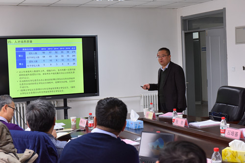 评审会由学校学位办主任赵军教授主持,院长张明军教授向评估专家组做专题汇报。在听取汇报和提问质询后,评估专家组现场考察了学院实验室、导师工作室、研究生教室和研究生资料室,并对研究生管理和培养的规章制度、开题报告、学位论文和相关过程性材料进行了检查。