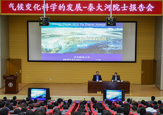 3月14日,中国科学院院士、中国科学院学术委员会主任秦大河一行访问437bwin必赢国际官网,进行学术交流并受聘为学校特聘教授。聘任仪式前,秦大河院士在新校区毅然报告厅为全校师生作了题为《气候变化科学的发展》的学术报告。报告会由陈克恭研究员主持,副校长李朝东教授代表学校向秦大河院士颁发聘书。