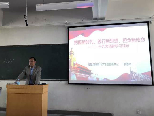 学院党委书记贾志斌给全体入党积极分子作了题为《把握新时代、践行新思想、担负新使命----十九大精神学习辅导》的党课。贾书记从十九大大会的任务、对报告的理解及报告的主要内容三个方面,重点就大会的主题、十九大提出的“新时代”、“新思想”、“新使命”、“新征程”、十九大的意义及十九大报告的主要内容等做了详尽的讲解。