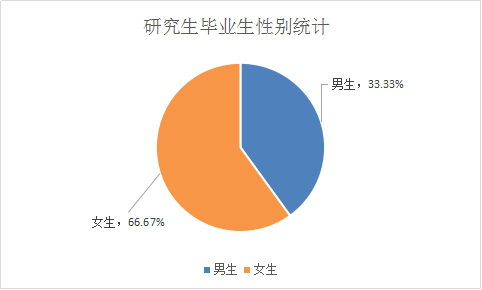 从2016届本科毕业生性别比例来看(如图1-4所示),其中男生有105名,女生有183名,男女人数相差78人。研究生毕业生性别比例来看(如图1-5所示),其中男生有30名,女生有45名,男女人数相差15人。总的来说,毕业生女生比例明显大于男生。