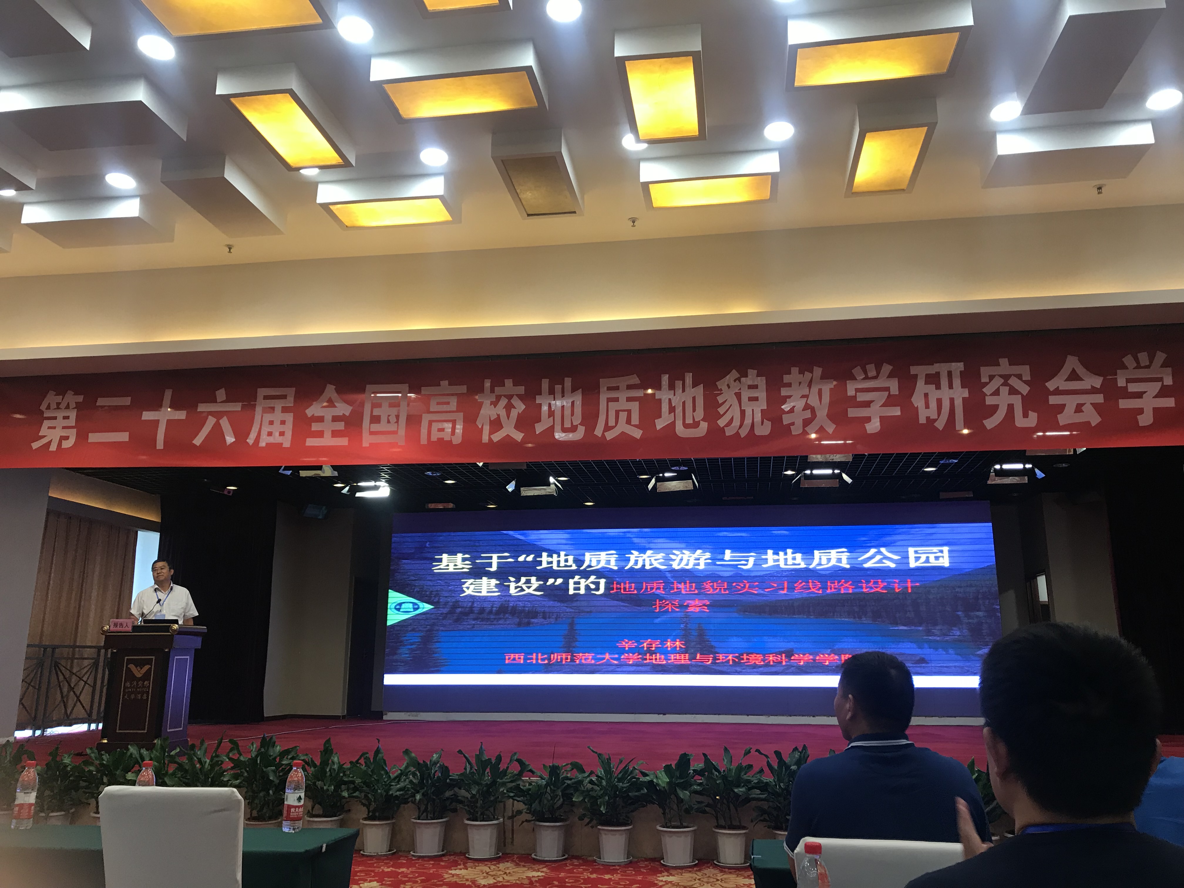 由全国高校地质地貌教学委员会主办、临沂大学承办的“第26届全国高校地质地貌教学研究会学术年会”于2018年8月16日-20日在山东省临沂市召开,大会分报告研讨和地质地貌野外实践教学现场研讨两阶段进行。我院地理科学系辛存林教授、杨东教授、贾文雄副教授、胡梦珺副教授全程参加本次会议,这也是我院教师首次参加全国高校地质地貌教学研讨会。辛存林教授、胡梦珺副教授在研讨会上分别做了题为《基于“地质旅游与地质公园建设”的地质地貌实习线路设计探索》、《437bwin必赢国际官网地理科学专业综合野外实习教学设计》的报告,激发了与会师生交流探讨在西北地区开展野外实践教学的兴趣。四位参会教师在野外实践教学现场研讨中就“蒙山形成演化历史与岩石矿物的成因类型”、“金刚石原生矿的成因、产状及分布特征”、“郯庐断裂带山东段-沂沭断裂带构造成因及分布特征”、“临沭岌山地质公园褶皱构造、恐龙足迹化石”、“岱崮地貌特征及其成因”、“沂水地下溶洞喀斯特地貌特征及其成因”等问题与参会师生进行了深入的学习、交流,并参观了天宇博物馆的矿物岩石标本、古生物化石。