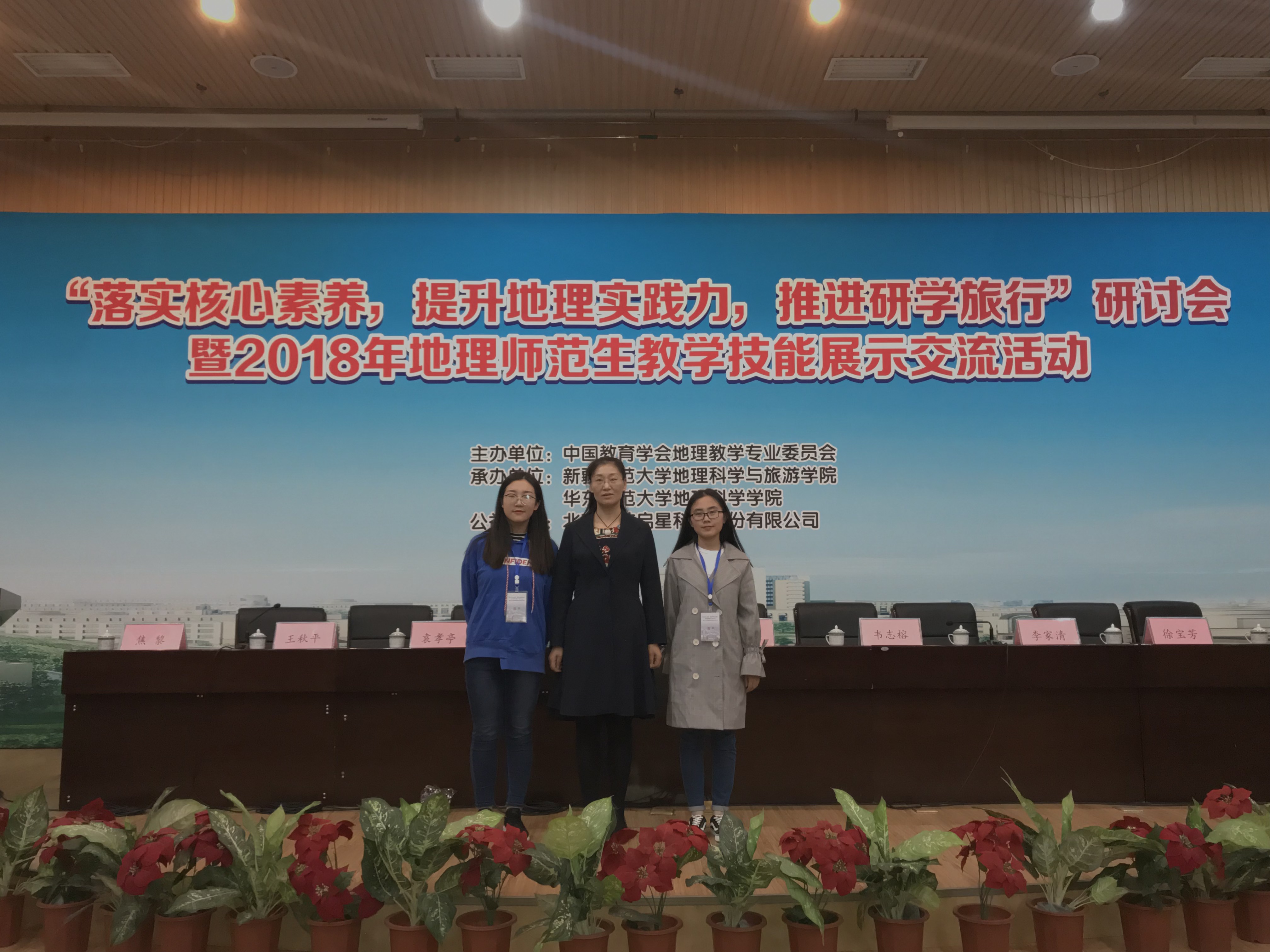 由中国教育学会地理教学专业委员会主办、新疆师范大学地理科学与旅游学院和华东师范大学地理科学学院承办的“落实核心素养,提升地理实践力,推进研学旅行”研讨会暨2018年地理师范生教学技能展示交流活动于2018年9月28日至30日在新疆师范大学国际教育大厦举行。我院地理科学系系主任胡梦珺副教授带领2015级地理科学(1)班徐原肖和姚晓艳同学参加了本次研讨会及交流活动,这是我院师生首次参加此项交流活动。