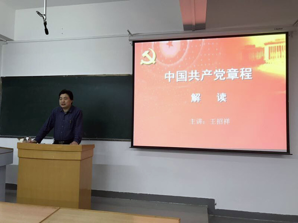 10月20日,学院邀请马克思主义学院侯选民副教授给全体入党积极分子作了题为《学习党的十九大精神,维护我国文化安全》的党课,学院党委书记贾志斌作了题为《中国共产党历次全国代表大会精神及习近平新时代中国特色社会主义思想》的党课,学院党委副书记王招祥作了《新<党章>解读与党员的发展培养》的党课。