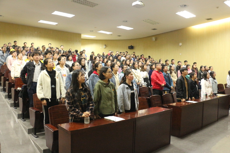 近日,为积极响应共青团中央发出的以“庆祝中华人民共和国成立70周年、纪念五四运动100周年”为主题的活动号召,激励和引导广大青少年大力弘扬爱国主义精神,我院组织召开了以“青春心向党,建功新时代”为主题的团会。学院近300名团员参加了本次团会。