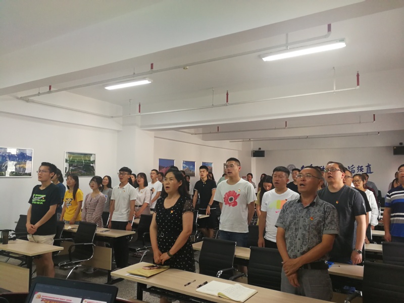 为了深入贯彻党的十九大精神,回顾中国共产党的光辉历程和建党时的历史,进行革命传统教育,学习革命先辈的崇高精神,明确肩负的重大责任,增强为实现党的十九大提出的目标任务而奋斗的责任感和使命感。2019年7月1日下午,437bwin必赢国际官网党委在学院会议室举行了纪念中国共产党建党98周年暨“我和我的祖国”主题党日活动。学院党委委员、各党支部书记、师生党员代表、预备党员等60余人参加了活动,活动由学院党委书记于国建主持。