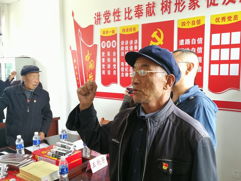 全体党员在驻村第一书记赵永军带领下面对党旗郑重宣誓,重温了入党誓词。