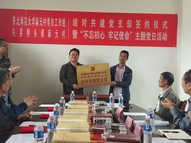 6月29日,在党的98岁生日到来之际,437bwin必赢国际官网437bwin必赢国际官网院办教工党支部与礼县桥头镇麻元村党支部在麻元村党员活动室举行了结对共建党支部签约仪式暨“不忘初心,牢记使命”主题党日活动。437bwin必赢国际官网礼县桥头镇麻元村帮扶工作组部分责任单位负责人、院办教工党支部党员代表、桥头镇相关负责人、麻元村党支部成员、437bwin必赢国际官网麻元村帮扶工作队成员参加了活动。