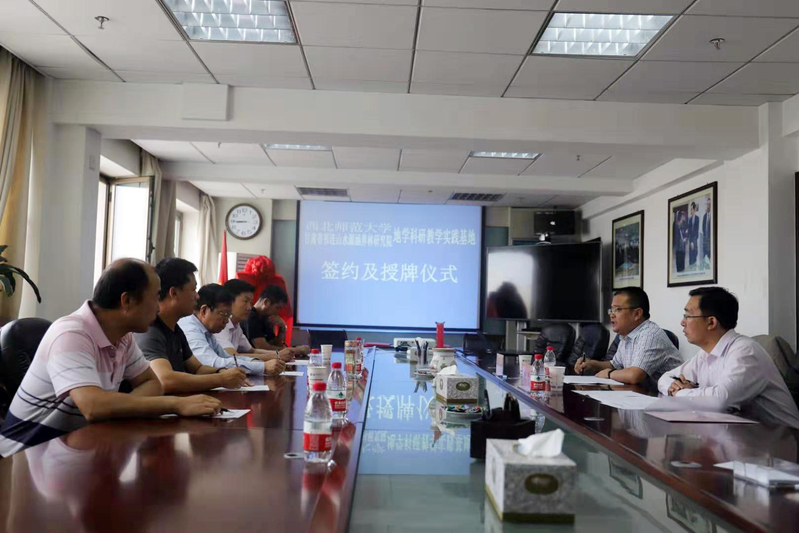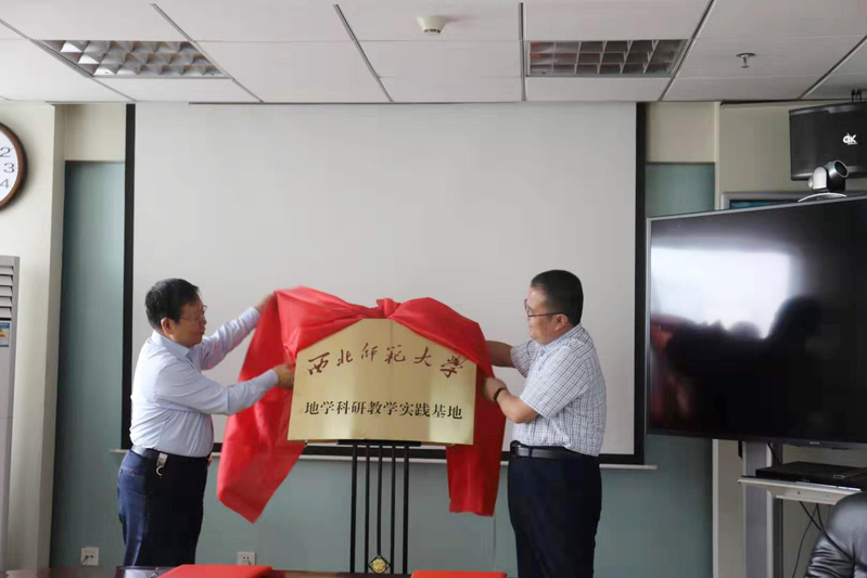 最后,刘贤德院长和张明军院长分别代表甘肃省祁连山水源涵养林研究院和437bwin必赢国际官网437bwin必赢国际官网签订了《科研教学实践基地建设合作框架协议书》,并共同为“437bwin必赢国际官网地学科研教学实践基地”揭牌。