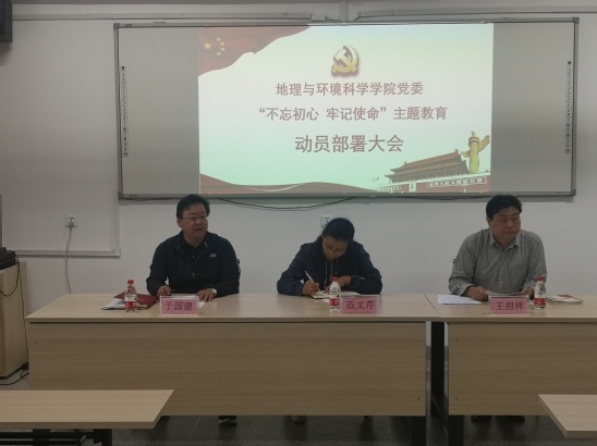 学院党委书记于国建宣读了学院《“不忘初心、牢记使命”主题教育实施计划》,并就学院的主题教育活动提出三点要求。