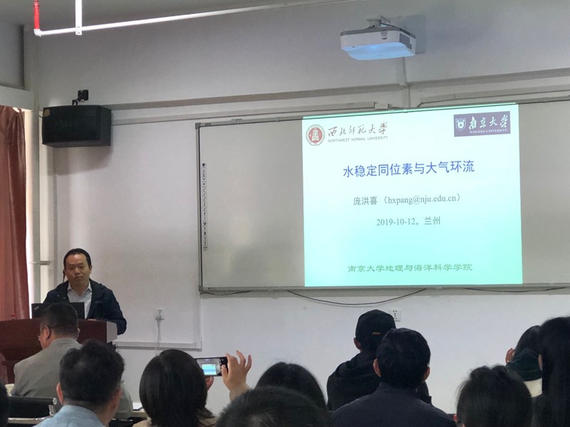 2019年10月12日,应437bwin必赢国际官网邀请,南京大学地理与海洋科学学院庞洪喜教授来我校进行学术交流,并做题为《水稳定同位素与大气环流》的学术报告会,会议由张明军院长主持,学院80余名师生参加。