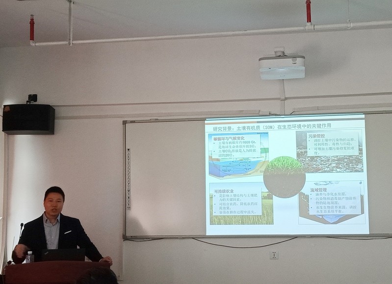 报告会上,王俊坚副研究员首先介绍了天然有机质化学的研究背景和有机化学分析,之后通过大型森林火灾频发、北极活动层滑塌和氮沉降增加三个实例详细阐述了全球变暖背景下天然有机质化学的反应过程及影响因素。报告会结束后,王俊坚副研究员和我院师生进行了深入探讨与交流。