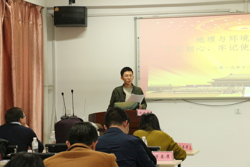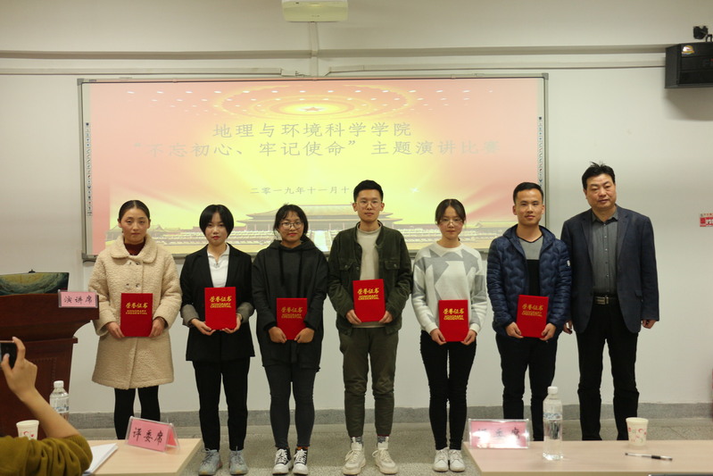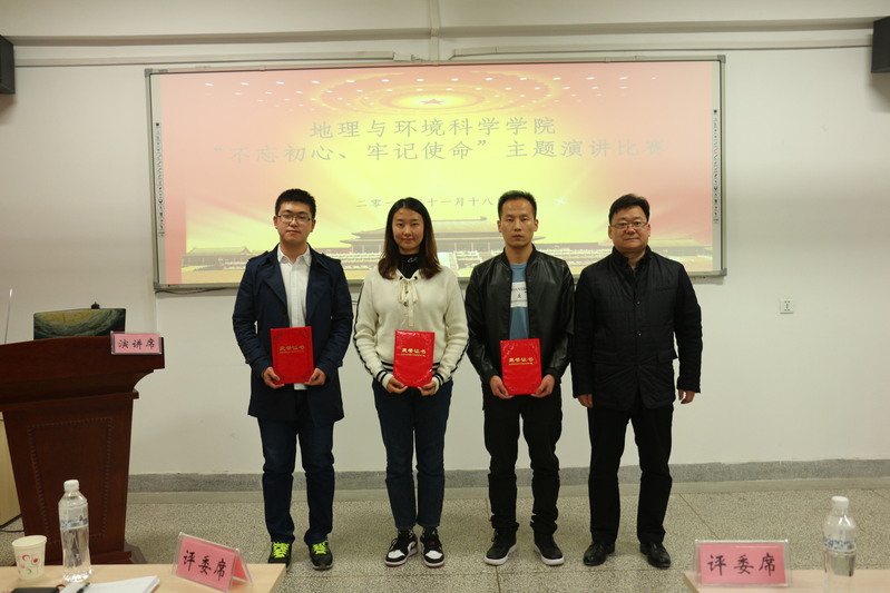 经过前期各支部的初赛选拔,来自学院9个学生支部的9名选手参加了决赛。他们结合自身学习、生活实际,以昂扬的斗志、质朴的语言诠释了学生党员的“初心和使命”,他们热情洋溢、慷慨激昂的讲述感染了在场的每一位观众,赢得了现场观众的阵阵掌声,他们9人的演讲题目恰恰组成了下面一句话:让我们《铭记》《我们的初心》和《党旗下的誓言》,《初心不改,青年更当时》,《只有不忘初心,才能方得始终》;让我们《初心不改,信念长存》,《做合格的青年党员》,《做新时期合格的地理人》,《坚守初心,奋勇前行》。