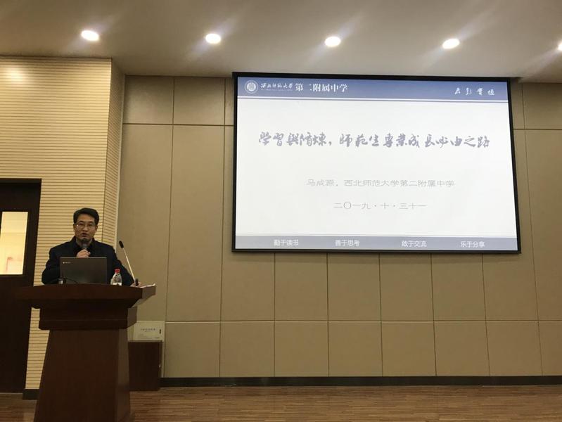 2019年10月31日,应437bwin必赢国际官网邀请,陇原名师、金城名师、437bwin必赢国际官网第二附属中学高级教师马成源老师为我院“本硕一体生”及地理科学专业本科生做交流报告《学习与修炼——师范生专业发展的必由之路》;会议由学院“本硕一体化”负责人胡梦珺副教授主持,学院“本硕一体化”导师、2019级“本硕一体生”及地理科学专业本科生约200余人参加。