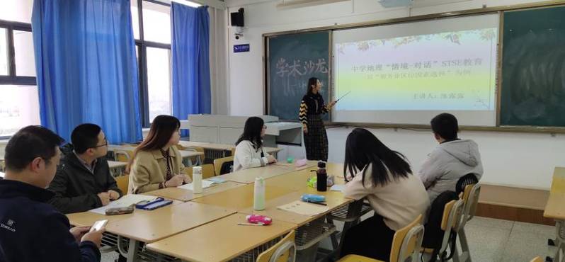 首先是陈露露以《中学地理“情境-对活”STSE教育模式,以“服务业区位因素选择为例”》为主题,对STSE教学模式进行了具体的解读,并鼓励大家在漫漫教学路上,要“且行且探索,且行且努力”。接着,寇婷婷以《分析西西伯利亚平原沼泽形成的原因》这一案例为主题,分享其教学设计过程,引出了地理教学从生活到课堂,从简单到复杂的教学思路。最后,大家一起讨论了“作为新时代的教师,应该如何高效的讲好一堂课”这个问题,每个人都积极发表自己的看法。