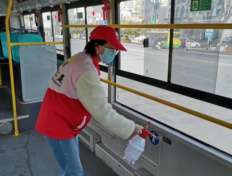 2017级地理科学2班孙婷婷同学参与交通疏导,协助车辆工作人员给过往车辆消毒,并进行线上线下的防疫知识宣传。