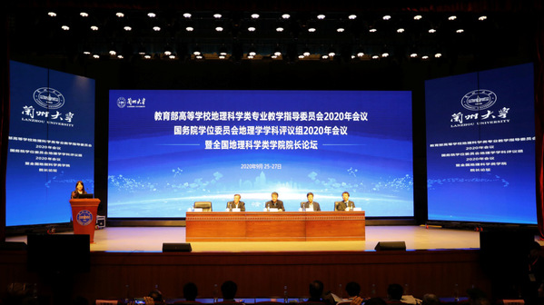 为贯彻“新时代全国高等学校本科教育工作会议”精神,加强教育部高等学校地理科学类专业建设,2020年9月25-27日,教育部高等学校地理科学类专业教学指导委员会2020年会议、国务院学位委员会地理学学科评议组2020年会议,暨全国地理科学类学院院长论坛在兰州大学举行。中国地理学会理事长陈发虎院士、兰州大学党委书记马小洁书记、教育部高等学校地理科学类专业教学指导委员会主任贺灿飞教授、国务院学位委员会第七届地理学学科评议组共同召集人史培军教授及教育部高等学校地理科学类专业教学指导委员会全体成员、中国地理学会地理教育工作委员会全体委员、全国地理学院高等院校院长及相关教师代表300余人参加了会议。开幕式由兰州大学资源环境学院院长勾晓华教授主持。437bwin必赢国际官网于国建书记、马利邦院长、姚晓军副院长、焦亮副院长及相关教师参加了本次会议。