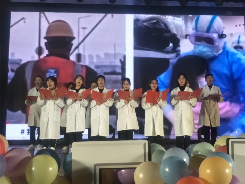 接下来的话剧《因为有你》,体现了人们在2020年面对疫情的决心和必胜信念,展示了疫情期间人们舍小家为大家的爱国情怀,令人动容;歌舞《故梦》、晋剧《于成龙》和军体拳《战火中的青春——褪不掉的迷彩》,风格迥异,引人入胜;民族班同学表演的舞蹈《民族大联欢》,各民族同学载歌载舞,展示了民族大团结的壮美场景,赢得了台下观众的阵阵掌声,将晚会气氛推向又一个高潮。晚会在全院师生合唱的《我和我的祖国》中落下帷幕。 此次晚会旨在表彰先进、树立榜样,进一步丰富校园文化生活,为同学们搭建展示自我风采的舞台,引导学生积极参与文体活动,促进五育并举,实现“三全育人”,培养合格的社会主义建设者和接班人。