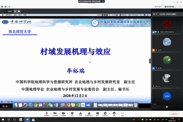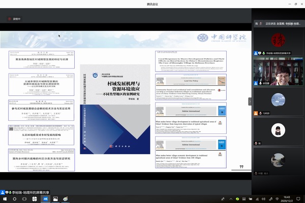 2020年12月2日,应学院邀请,中国科学院地理科学与资源研究所李裕瑞副研究员在线为学院师生做了题为《村域发展机理与效应》线上学术报告。报告会由马利邦院长主持,地环学院120余名师生参加。