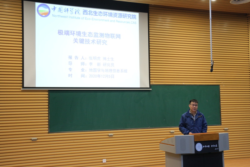 2020年12月4日,应地环学院邀请,中科院西北生态环境资源研究院张明虎博士来我校作题为《极端环境生态监测物联网关键技术研究》的学术报告。报告会由姚晓军副院长主持,学院200余名师生参加。