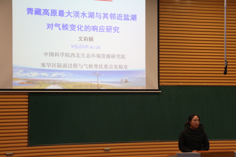 2020年12月4日,应地环学院邀请,中科院西北生态环境资源研究院文莉娟研究员来我校作题为《青藏高原最大淡水湖与其邻近盐湖对气候变化的响应研究》的学术报告。报告会由姚晓军副院长主持,学院200余名师生参加。