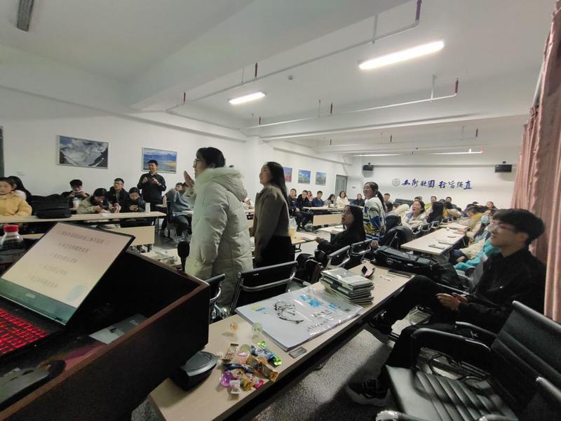 班会上,两位心理委员现场分析了同学们可能存在的心理问题,提供了合理有效的调解办法,介绍了西北师大心理咨询服务中心的地址和联系方式,组织了心理健康教育知识竞赛,并组织同学们进行了互动小游戏,活跃了现场氛围,最后,心理委员分享了自己关于心理健康的体会,鼓励同学们要阳光健康、积极向上地面对学习和生活中遇到的各种困难。在场的同学们积极参与,热情回答问题,掌声不断,现场气氛非常热烈。