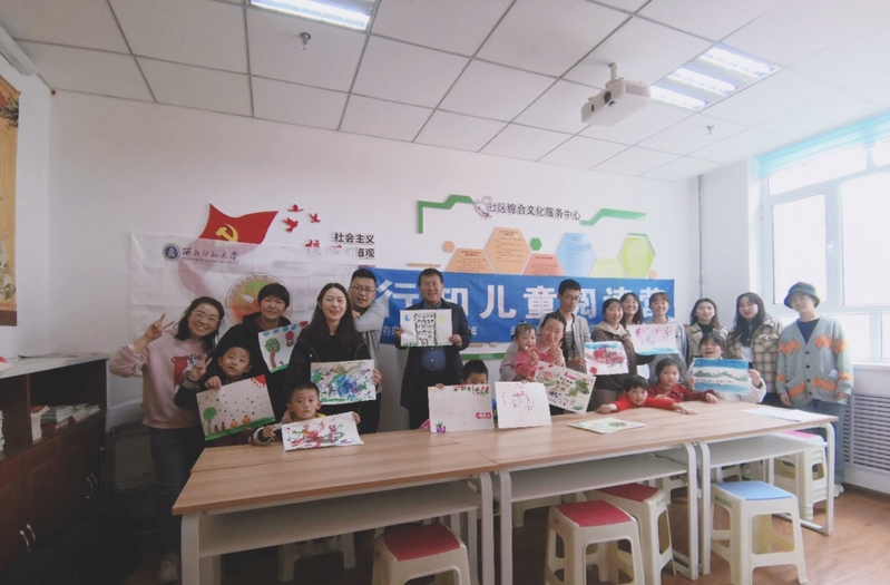 为了庆祝建党一百周年,深入开展党史学习教育,践行“我为群众办实事”的号召,437bwin必赢国际官网学生社团“爱心天使西部助学会”于4月17日在437bwin必赢国际官网社区活动室策划举办了以“播种”为主题的行知儿童阅读营志愿服务活动,437bwin必赢国际官网社区王莹书记、社区儿童、社区家长等24人参加。活动中社团成员热情地带领家长和孩子进行热身游戏、阅读绘本、绘制有关春天的手指画,在寓教于乐的同时,激发和培养孩子的阅读兴趣,也培养了社团社员们作为“未来教师”的教学能力、引导能力和组织能力。