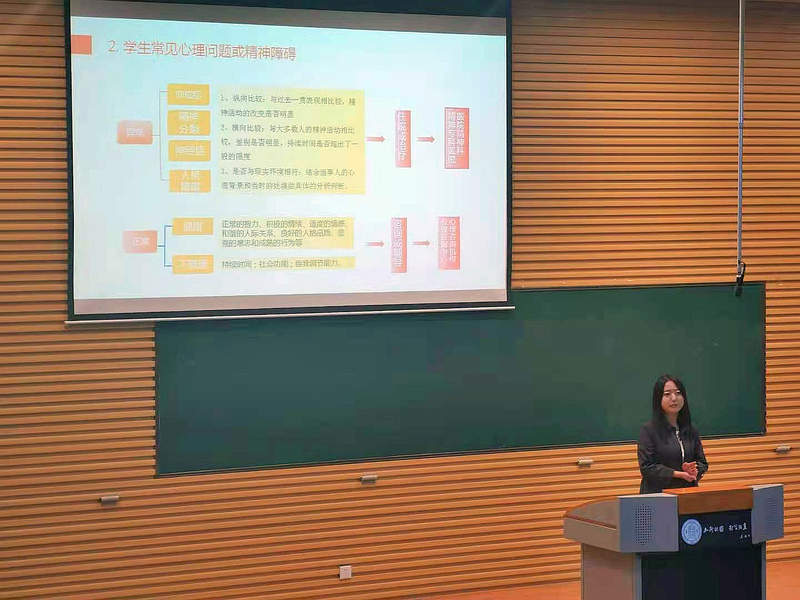 芦老师的培训内容涵盖了大学生常见的心理问题、心理健康判断标准、心理健康问题解决方法、常见的错误观念以及如何采取正确的危机预防措施等多个方面。报告例举了大量真实案例,深入浅出,加深了同学们对于心理健康知识的理解,提高了对心理健康工作的重要性认识,帮助学生骨干了解自己的工作职责,增强了工作责任意识,受益匪浅,收获颇丰。
