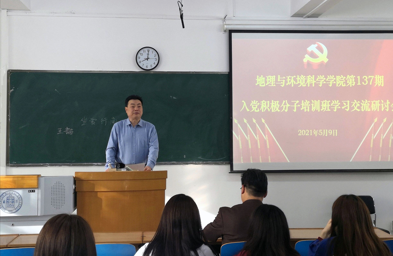 根据《中国共产党发展党员工作细则》及学校相关规定,学院党委于4月上旬开始举办2021年上半年(总第137期)入党积极分子培训活动,学院87名入党积极分子参加了培训。4月10日上午,培训班举行了开班仪式,于国建书记、王招祥副书记和杜波老师分别作了三场专题报告,围绕党史学习教育、中国共产党简史、党员发展、十九大党章、大学生党员的责任与义务等热点问题进行了讲解和阐述。