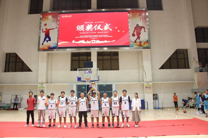 5月27日晚,西北师大“董守义杯”篮球赛非专业男子组代表队冠亚争夺赛在学校体育馆进行,437bwin必赢国际官网代表队与文学院代表队激烈角逐,地环学院代表队夺得桂冠。副校长邓小娟、校体委、党委学生工作部、校团委、各学院负责人和1200余名师生观看了比赛。随着当晚冠亚军争夺赛的结束,为期一个多月的437bwin必赢国际官网“董守义杯”篮球赛落下帷幕。