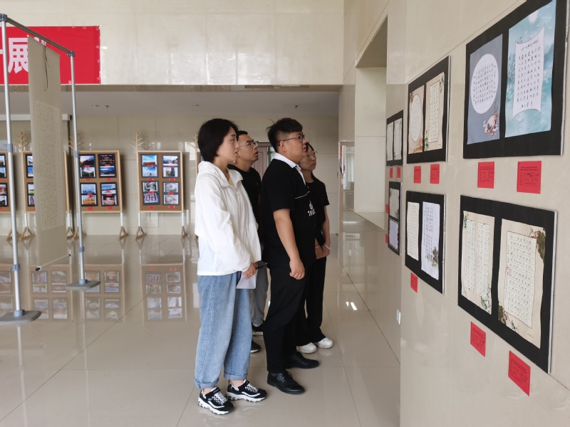 丹青溢彩,美照传情,翰墨飘香。本次展览旨在庆祝中国共产党成立100周年,重温百年党史,讴歌党的光辉历程,唱响时代主旋律,彰显全国各族人民在改革开放、脱贫攻坚及抗击疫情的道路上取得的一个个伟大胜利,谱写时代华章。本次展览共计展出各类软笔书法、硬笔书法、中国画、简笔画、线描、素描、速写、纸贴画、海报设计、立体构成、摄影等作品200余幅(件)。