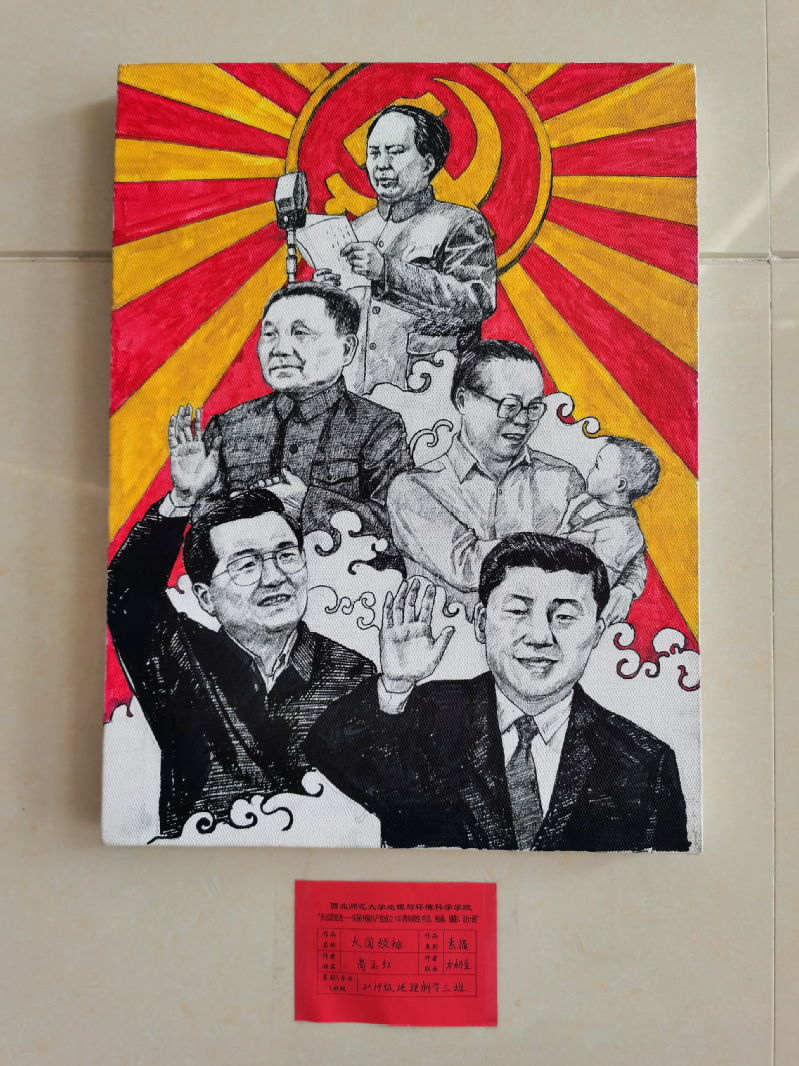 开幕式上,于国建书记指出,今天呈现给大家的一幅幅佳作妙构,都是各位老师和同学倾注了大量心血,巧妙构思,精心创作出来的,是大家对中国共产党成立100周年的衷心祝福,感谢各位作者对本次展览的积极配合和参与,感谢学院地理学社、环境保护学社、城市与资源学系、后勤保障部、新校区东吴物业及兄弟单位对本次展览的鼎力支持,让我们在每一幅作品中感受地环学院师生对党的深情祝福,对祖国的真切赞美!