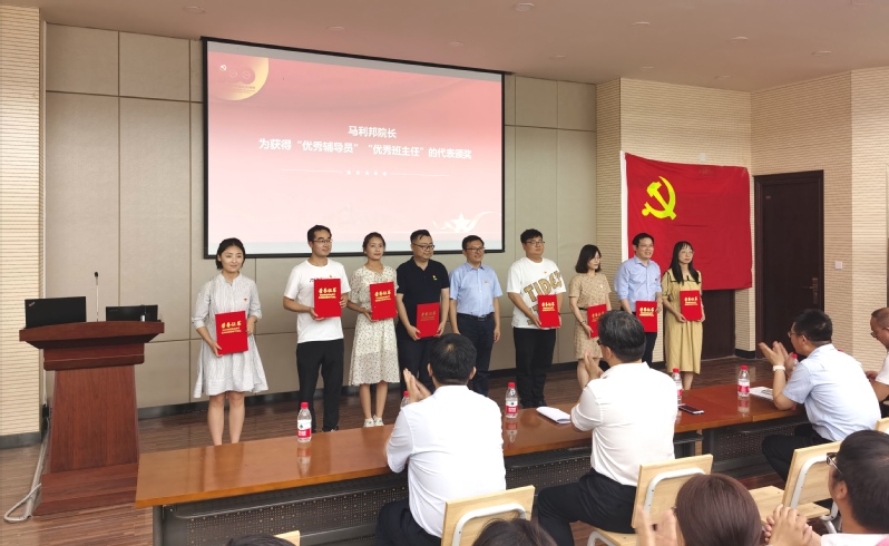 大会在雄壮的国歌声中拉开帷幕,姚晓军副院长宣读了《437bwin必赢国际官网关于表彰2021届“优秀毕业生”“优秀辅导员”“优秀班主任”及“先进班集体”的决定》;王招祥副书记宣读了《437bwin必赢国际官网关于表彰“优秀共产党员”“优秀党务工作者”及“先进党支部”的决定》和《437bwin必赢国际官网关于表彰“永远跟党走——庆祝中国共产党成立100周年师生书法、绘画、摄影、设计展”获奖作品的决定》;于国建、马利邦、姚晓军、焦亮、谢文涛先后向获奖的个人和集体颁发了荣誉证书。