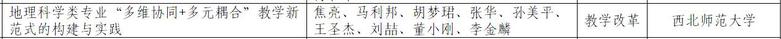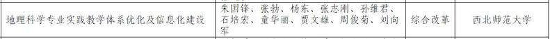 潘竟虎教授负责的“遥感原理与应用”被授予“甘肃省高等学校教学团队”荣誉称号,焦亮教授主持的“地理科学类专业‘多维协同+多元耦合’教学新范式的构建与实践”和朱国锋副教授主持的“地理科学专业实践教学体系优化及信息化建设”2个项目荣获甘肃省高等教育教学成果培育项目。