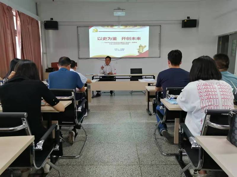 会上,于国建书记结合学校《关于开展2021-2022学年度第一学期“开学第一讲”教师教育活动的通知》精神,为全院教职工做了“以史为鉴,开创未来”的专题辅导报告。