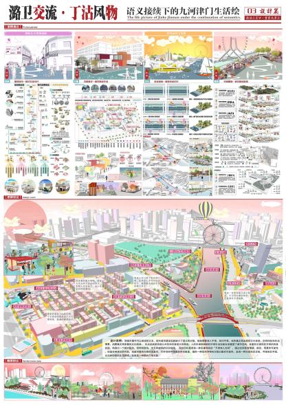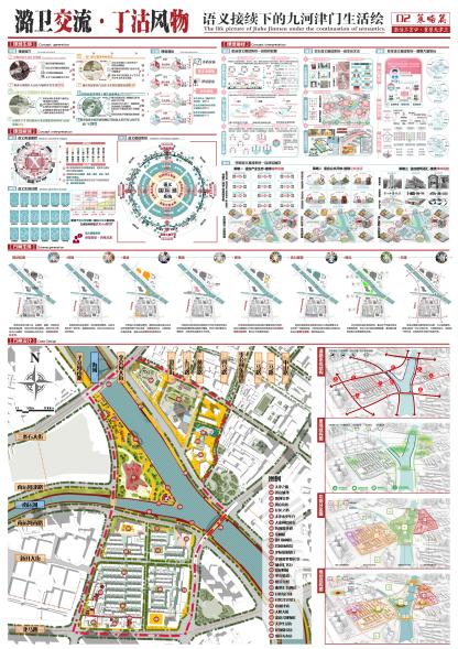 本次竞赛的主题为:“激活三岔口·重塑天津卫”——天津市三岔河口周边老城提升改造规划设计,来自重庆大学、西北大学、长安大学、贵州大学、西安建筑科技大学等40多所高校、146份设计作品参与角逐,经过专家认真评审,最终22份作品获奖。学院参赛师生在6月初赴天津实地调研学习后,经过一个月的辛勤努力,共提交两份作品。其中,由张凯、赵学伟、魏西燕、马雨佳、焦建平五位同学设计,李巍、张志斌两位老师指导的赛作品:“潞卫交流·丁沽风物——语义接续下的津门九河生活绘”荣获佳作奖。这是继我院学生持续参与高水平规划竞赛所获的又一佳绩。