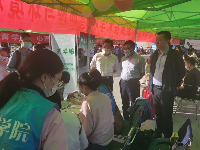 9月11日上午,学院党委书记于国建、院长马利邦、党委副书记陈建海等院领导来到学院迎新现场与学院新生亲切交流并向新生送上新学期的祝福,鼓励新同学把握青春年华、树立学业志向、收获进步成长。随后,他们又深入2021级学生宿舍,了解新生的住宿准备情况,安排学生志愿者帮助新生引导宿舍、搬运行李。同时,辅导员老师和学生志愿者们助力迎新,帮助新生办理报到注册、宿舍入住等手续,保障学院迎新活动有序开展。