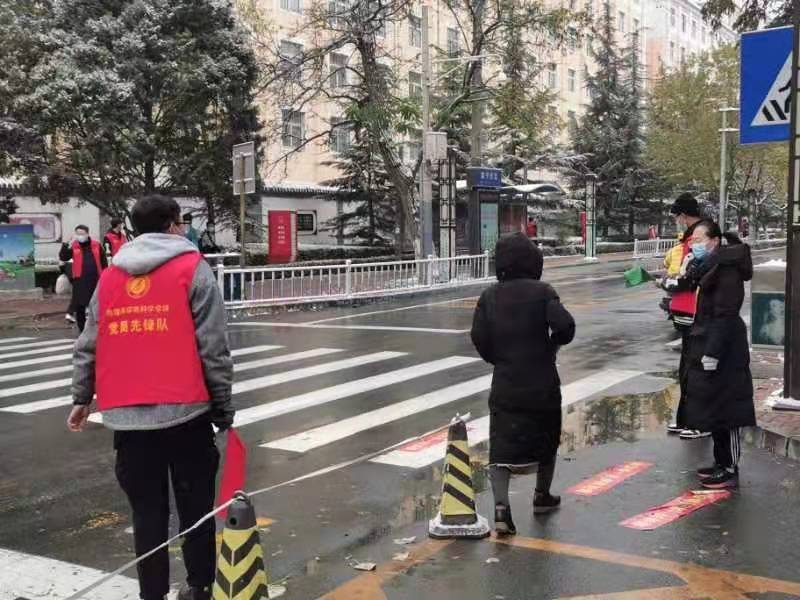 在学校实行“三隔”方案期间,为保证学生有序往返公寓与餐厅之间,减少人员聚集和保持空间间隔,学院全体辅导员在兰天公寓、校本部西门、党校公寓北门、新校区餐厅广场与承担起值班任务,每天坚持按时到岗值班,耐心提醒同学们行走保持一米间隔,亲自指挥同学安全通过马路,为常态化疫情防控工作筑牢屏障,用行动诠释了学生工作者应有的使命和担当。特别是11月6日下午,当时兰州气温骤降至零下6摄氏度,天空雪花纷飞,路面积雪湿滑,校本部南门来往车辆众多,我院曹珍璇、田洪宇、周宇、李雅薇四名辅导员老师坚守岗位,紧紧盯着每一位过路的同学,密切关注来往车辆,不断提醒大家注意安全,在寒风中一站就是4个小时,为的就是保护同学们的交通安全。