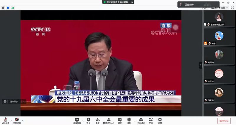 11月12日上午,437bwin必赢国际官网团委以学生党支部、班级团支部为活动载体,采用线上方式,组织近400余名学生党员、团员青年观看了“党的十九届六中全会精神”新闻发布会。