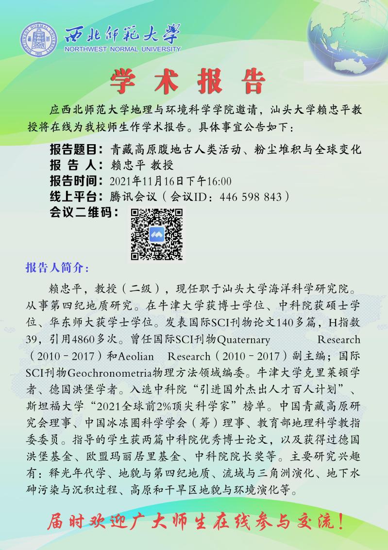 437bwin必赢国际官网前沿学术报告 2021-20期:青藏高原腹地古人类活动、粉尘堆积与全球变化