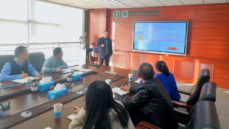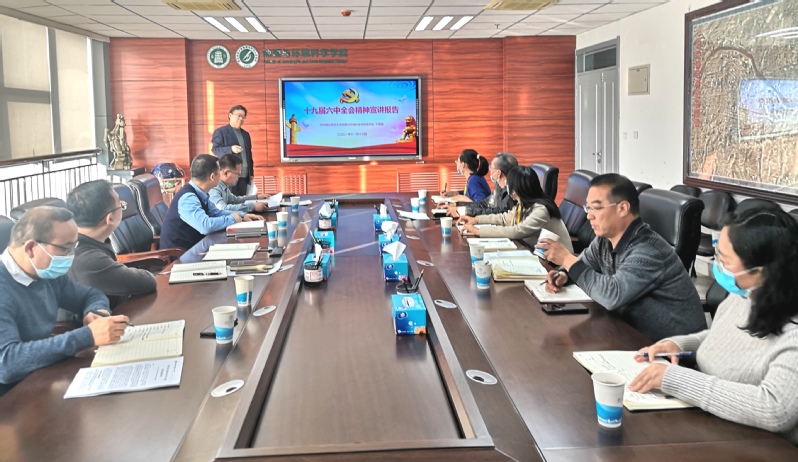 11月18日下午,437bwin必赢国际官网党委书记于国建在新校区综合实验楼912会议室为学院老师作十九届六中全会精神宣讲报告。学院党委副书记陈建海主持报告会,学院党委理论学习中心组全体成员、辅导员20余人现场聆听了报告,学院党支部书记、班主任、部分研究生导师线上收听。
