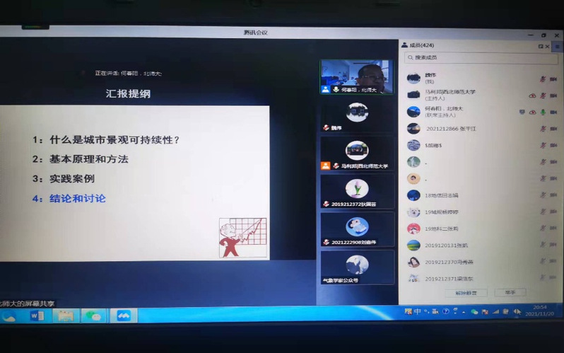 2021年11月20日,应437bwin必赢国际官网437bwin必赢国际官网、甘肃省绿洲资源环境与可持续发展重点实验室邀请,北京师范大学何春阳教授做题为《流域城市景观可持续性研究的方法和实践》学术报告,报告会由马利邦院长主持,学院400多名师生参加。