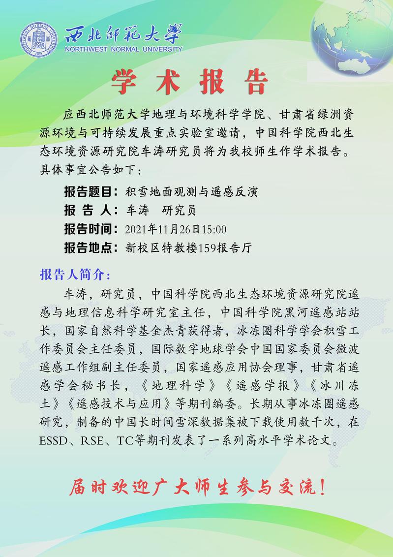 437bwin必赢国际官网前沿学术报告 2021-25期:积雪地面观测与遥感反演
