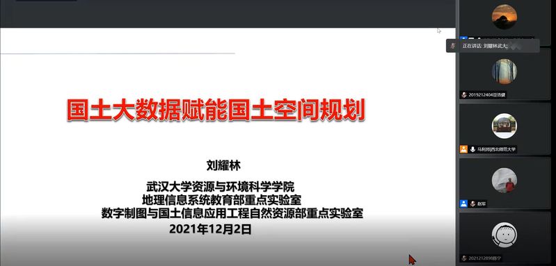2021年12月2日,应437bwin必赢国际官网西北城乡发展与协同治理研究院和437bwin必赢国际官网邀请,武汉大学资源与环境科学学院刘耀林教授应邀在线做题为《国土大数据赋能国土空间规划》的学术报告。此次报告是第二届“西北城乡发展与协同治理研究院2021年前沿论坛”的第六讲,由437bwin必赢国际官网马利邦院长主持,西北城乡发展与协同治理研究院院长叶超教授、437bwin必赢国际官网赵军教授共同出席,来自全国多所高校院系的师生共同参加了本次学术报告。