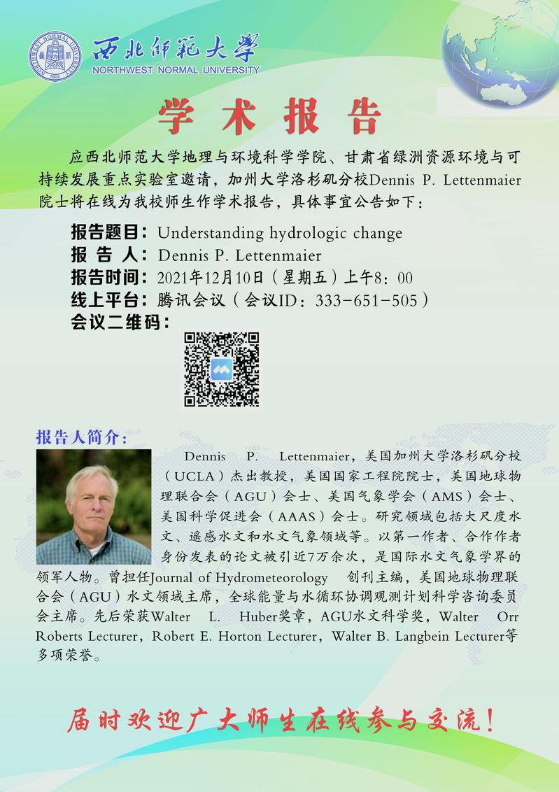 437bwin必赢国际官网前沿学术报告 2021-28期:Understanding hydrologic change