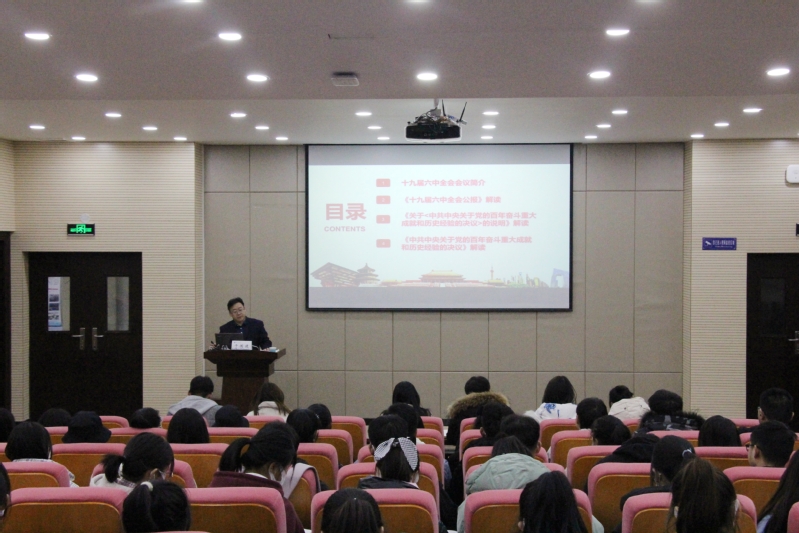 12月13日晚,437bwin必赢国际官网党委书记于国建在新校区给学院青年学生宣讲十九届六中全会精神。学院辅导员、学生党员、入党积极分子以及团员青年骨干参加报告会。报告会由学院团委书记曹珍璇主持。