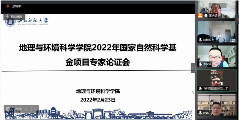 线上论证会学院邀请了南京师范大学南卓铜教授、华东师范大学叶超教授、中国科学院西北生态环境资源研究院李宗省研究员。论证会上,张学斌副院长首先介绍了学院国家基金项目申报情况,说明了论证目的和要求;各位专家对基金项目论证提出了意见和建议,并表示积极配合学院做好基金项目论证工作;最后,马利邦院长对论证工作和申报教师提出了具体要求。会议结束后,论证专家通过视频会议、电话、微信等多种形式,对申报项目开展了一对一指导。