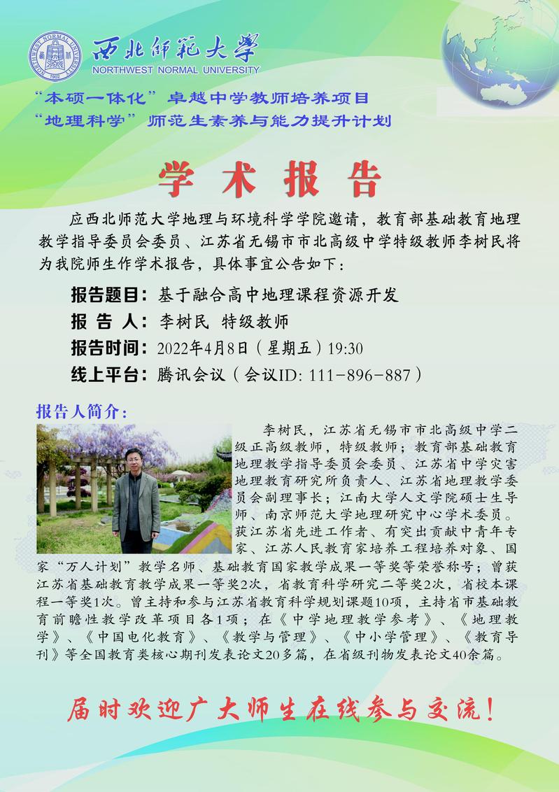 地环学院前沿学术报告 2022-05期:基于融合高中地理课程资源开发